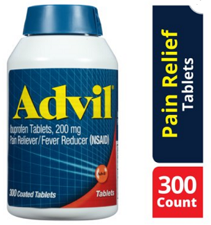 Advil Ibuprofen 消炎药同品类销量第一,能够有效缓解疼痛,12岁以上人群4-6小时一粒,禁止24小时内服用6粒以上。