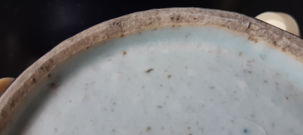 物理光泽:真品釉面应有自然磨损痕迹和柔和的“宝光”,不应有现代化学强酸处理后的干涩感(俗称“酸洗痕迹”)。
