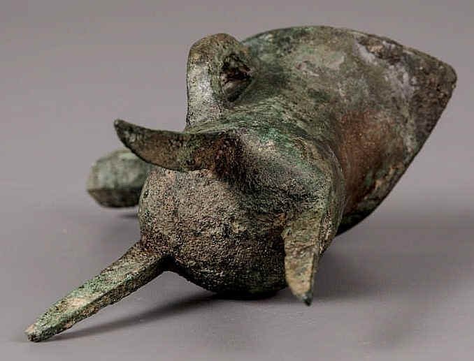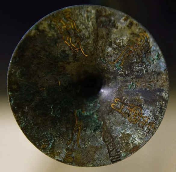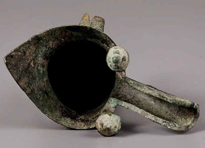 伪器系新铸,经叩击后声音清脆,犹如新铜,而经过地下腐蚀较深的青铜器,铜质已属矿化,所以发音以浑浊者居多。当然埋藏在极其干燥而又纯粹的土层中的青铜器,敲击音也有甚佳的。