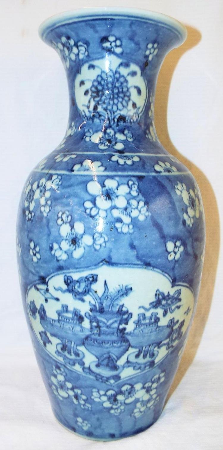 大清康熙年制青花:早期青花使用浙料,呈色灰蓝,个别发色较灰暗,与顺治青花特点相近。中期青花使用云南省的珠明料,这种青花色料提炼精纯,呈色鲜蓝青翠,明净艳丽,清朗不浑,艳而不俗,有的呈宝石蓝色,鲜蓝而不火气,它与明嘉靖青花蓝中泛紫的特征有很大的区别。康熙青花有五个层次的色阶,有头浓、正浓、二浓、正淡、影淡之分。这也是康熙青花备受世人推崇的重要原因之一。晚期青花,呈色趋于淡雅,有的泛晕散。康熙朝除了烧造传统的白地青花外,还有浆胎青花、哥釉青花、郎窑青花、蓝地白花、豆表釉青花、青花釉里红、青花加黄、青花加紫、青花戗金、青花镂雕等派生品种。