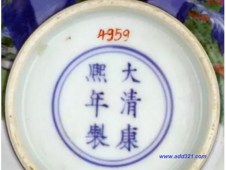 14、康熙宫窑款以书写为主,大多写在器底部,有少数写在器身上,一般为大清康熙年制有六字二行、六字三行、民窑器物一般无款,有的器物仅有青花双圈或一秋叶、盘肠等。