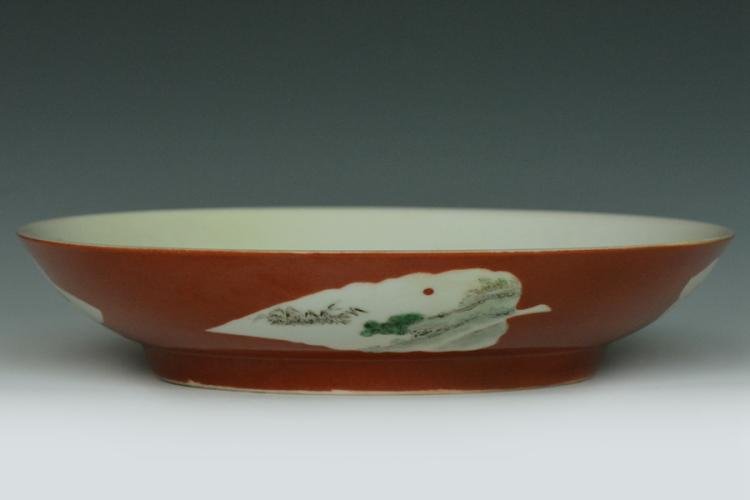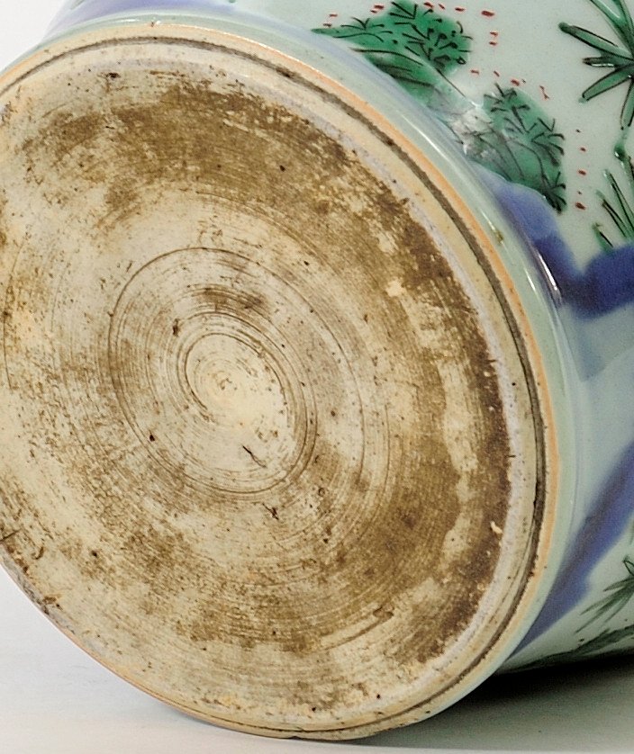 墨色之针,渲以硬绿,给人以浓翠欲滴的感觉。康熙瓷器人物多模仿陈老莲(陈洪绶)画法。