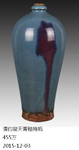 (4)在酸性物中浸泡之后,马上以土覆之,作出人为的土锈,且这种土锈渗入釉中,很容易使收藏者蒙骗上当。其实根据近几年来北方出土的钧瓷,以及在钧台窑发掘所获得的大量钧瓷标本来看,钧窑瓷器面上的土锈很少,出现大块土锈粘结的现象更为少见,大都呈现出一种光洁细腻的效果。有些作伪者以粘合剂作出的土锈粘结假象,实为弄巧成拙、画蛇添足之举。