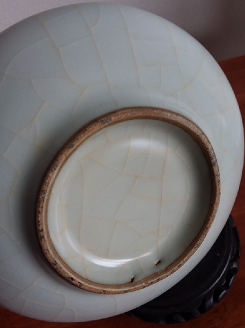 南宋官窑釉色以粉青为主,有纹片。在器物的底部落脱处、口沿和棱角釉薄处,胎都会烧成紫褐色,称为“紫口铁足”,这称得上是南宋官窑的典型特征。