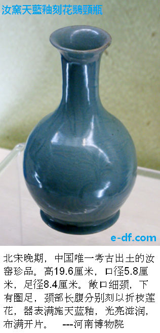 宋代的单色釉瓷取得了很大成就,名窑遍布全国,其中最著名的为:“汝、钧、官、哥、定”。
