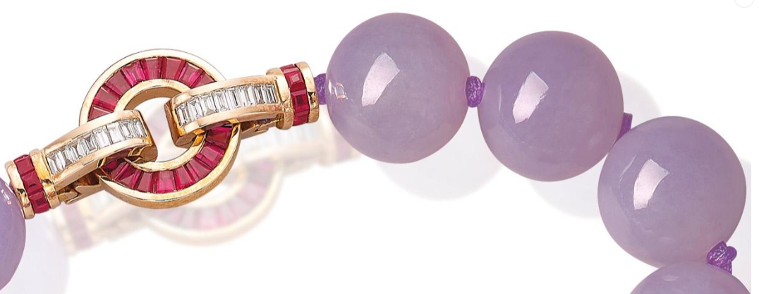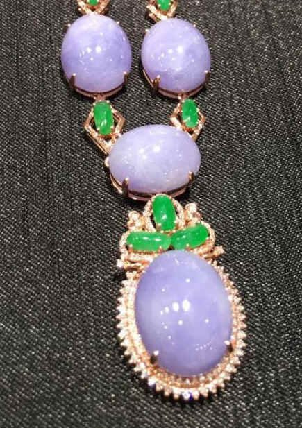 这个紫色的翡翠,按照“质地”叫做“藕种”,按照“水头”达到“冰种”,按照细腻程度,可以叫做“糯种”,组合起来,就叫做“冰种藕地糯种紫罗兰翡。 |