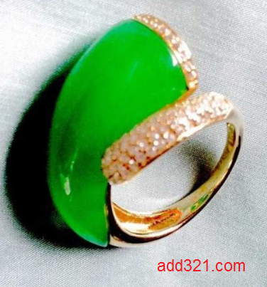 染色石英石做成的戒面的底面呈内凹状。