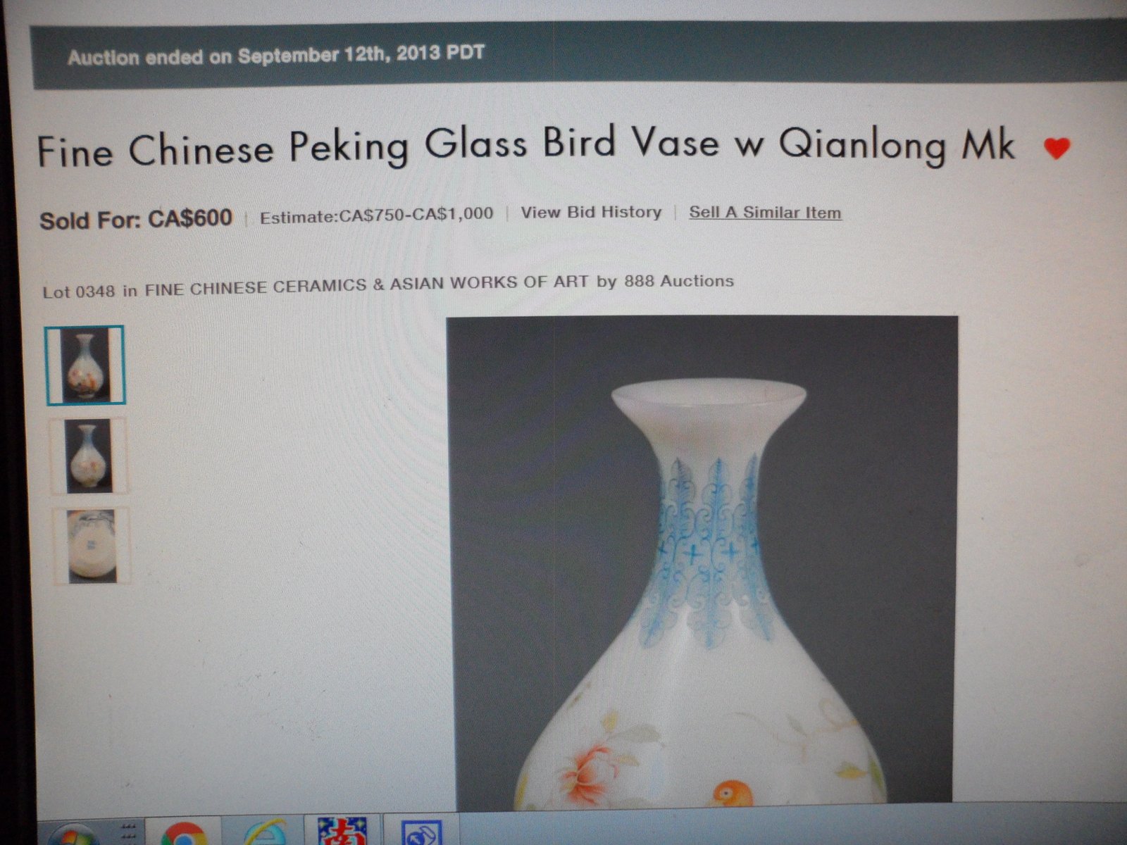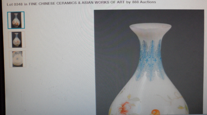 尺寸: 高:18cm,宽:12cm。 口径5.5厘米,底径5.5厘米。 拍自Sep 12, 2013年加拿大拍卖会 |