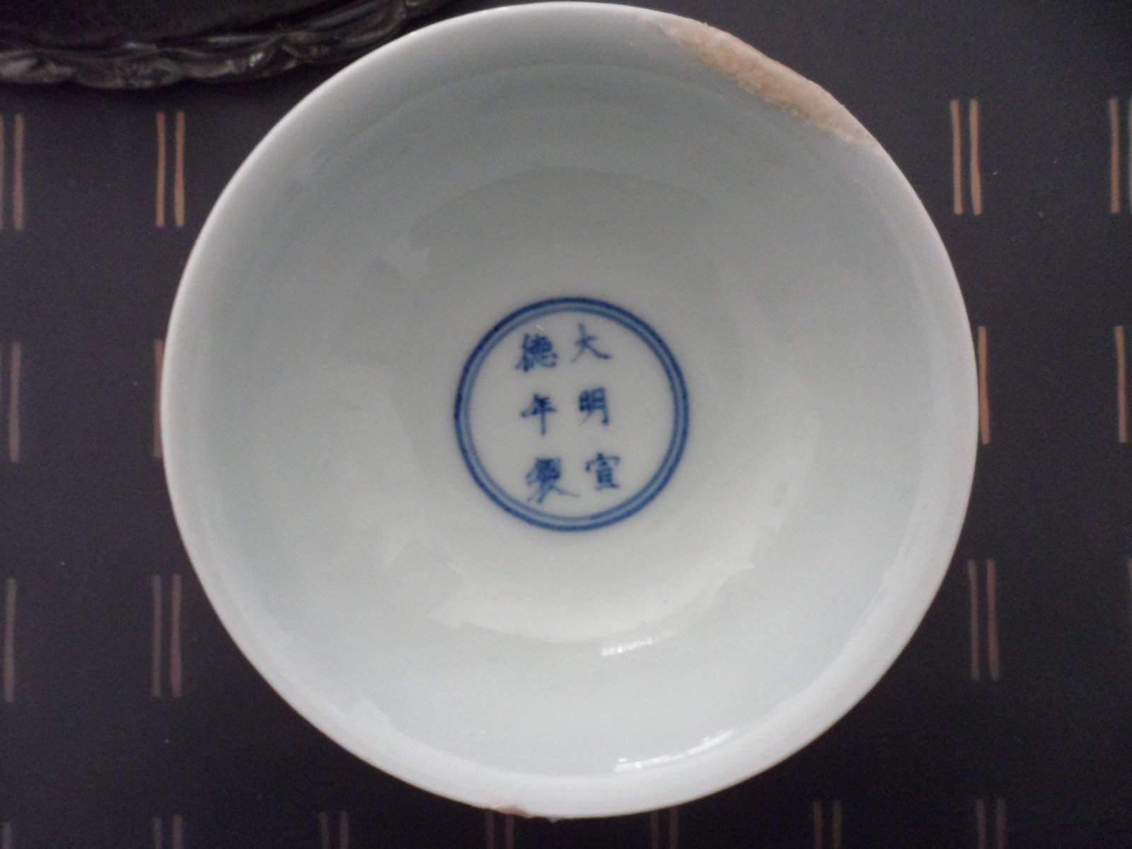 | 杯口缘有二处小冲受损 | “大明宣德年制”六字款 | |||