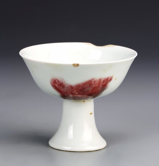 | 大英博物馆中国明早期瓷器高脚杯的平底足:
