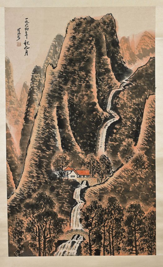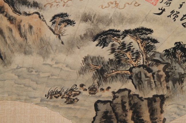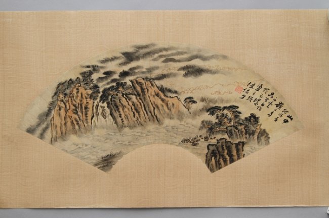 (A Lu Yanshao 'Pine Trees And Landscape' Fan Painting)