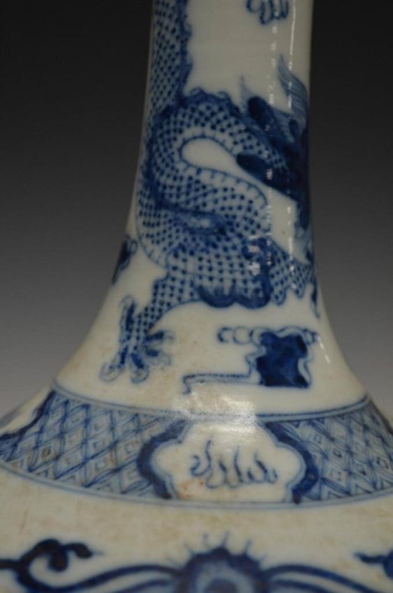 康熙款青花龙纹长颈瓶高:12英寸 拍自Aug 18, 2013.年美国拍卖会