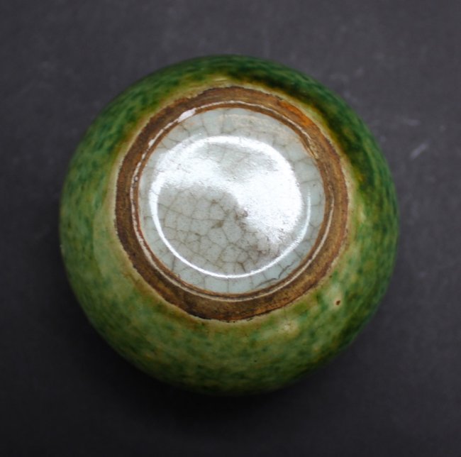 郎绿釉苹果尊(3 1/4 x 2 3/4")小口,肩部凹下,鼓腹,圈足。通体施郎绿釉,尊内及圈足内施白釉。造型稳重,传世稀少。 除了颜色为绿色外,有上述郎红釉苹果尊的特征。 相对郎红釉而言,郎绿釉则是更为少见的一种,因此,郎绿釉苹果尊更加珍贵。 康熙郎红(郎绿)还有一特征,往往被忽略,那就是康熙郎红一般以小中器型为主,大器较少. |