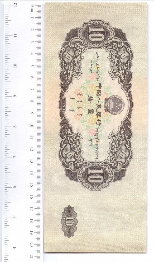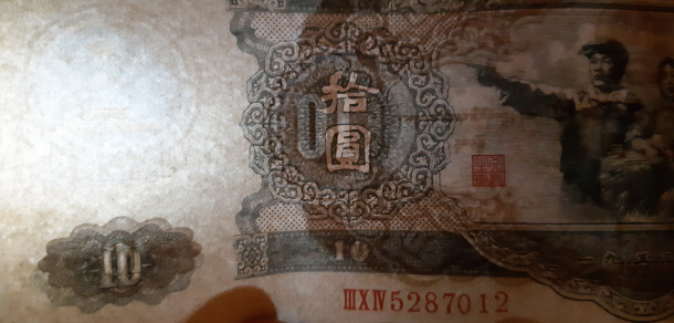 53年版十元人民币普通灯光下: