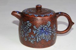 明代有“四家”(即龚春、董翰、赵梁、元畅)及“三大”(时大彬、李仲芳、徐友泉)之说。 该紫砂汉铎壶造型古朴凝重,壶砂朴拙,壶盖厚重,壶身、壶底以及壶盖处均有“元畅”二字。名款“元畅”,二字用笔熟练。以平等青料装饰,花饰以明代流行的菊花为主,青花与紫砂融为一体。紫砂用料有明显的“梨皮”特征。 明代紫砂壶流传至今已经非常少,此紫砂壶实为紫砂壶爱好者或紫砂艺术博物馆的罕见藏品。 平等青料: 色泽淡雅,产于江西乐平。明“空白期”晚期和成化、弘治、正德早期时使用。此料呈色淡雅、青亮、稳定。 该紫砂壶来自加拿大保利拍卖行(2013年拍卖)。 |