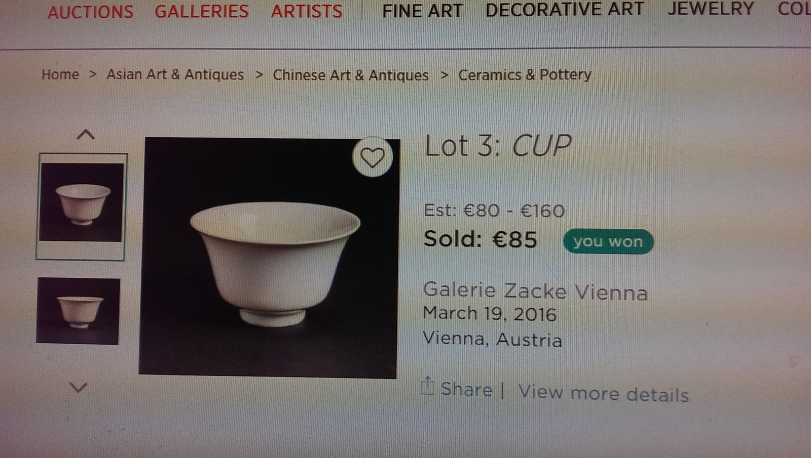 Auction by Galerie Zacke Vienna March 19, 2016, 2:00 PM CET Vienna, Austria |