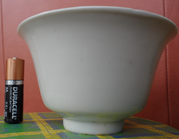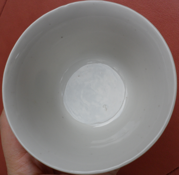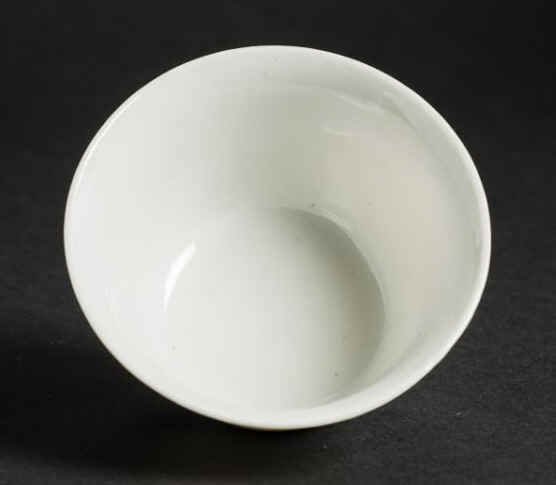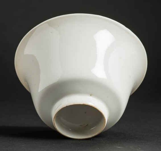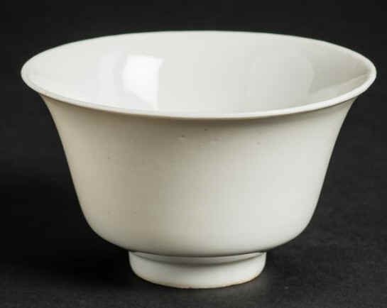 康熙甜白釉碗: H6.8xW10.8; 造型优雅,来自欧洲收藏家L. Fischer。 |