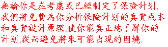 想有更进一步了解?想了解购买人寿保险有哪些益处?想更详细的知道综合人寿保险的理财特性? 今天就致电理财顾问免费咨询!
