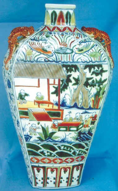 明成化年间创烧出在釉下青花轮廓线内添加釉上彩的“斗彩”,嘉靖、万历年间烧制成的不用青花勾边而直接用多种彩色描绘的五彩,都是著名的珍品。清代的瓷器,是在明代取得卓越成就的基础上进一步发展起来的,制瓷技术达到了辉煌的境界。康熙时的素三彩、五彩,雍正、乾隆时的粉彩、珐琅彩都是闻名中外的精品。