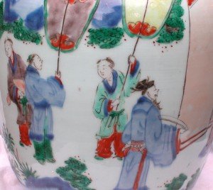 乾隆以后,嘉庆,道光粉彩与五彩仍为彩瓷主流,但质量上已赶不上康,雍,乾三朝。清末,五彩,粉彩继续烧制,但色彩的鲜艳程度以及制作工艺水平大大降低,到清晚期浅绛彩的出现,使一部分瓷器代替了粉彩与五彩的发展,其工艺水平反在二者之上,形成了一个多彩同时出现的局面。民国时以浅绛彩为主流,粉彩,五彩很少出现。