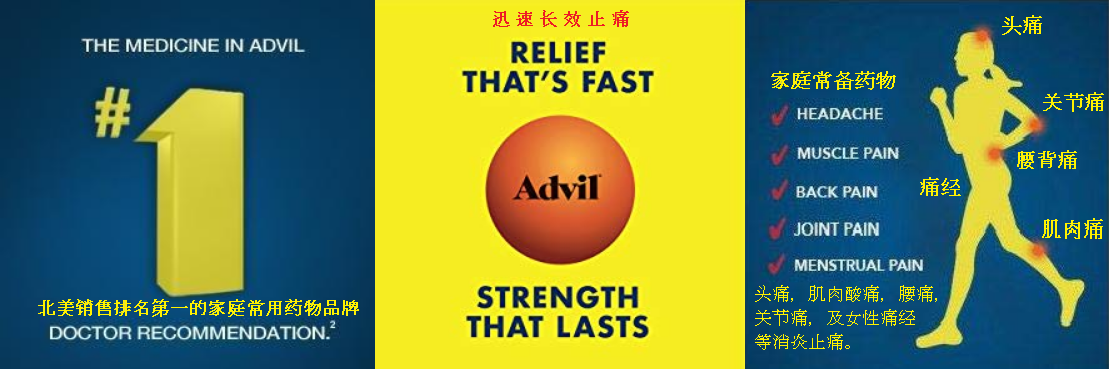 Advil Ibuprofen 消炎药同品类销量第一,能够有效缓解疼痛,12岁以上人群4-6小时一粒,禁止24小时内服用6粒以上。
