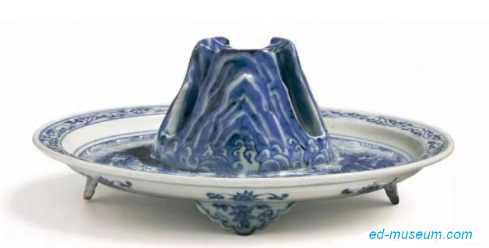明永乐 青花海水龙纹山形爵托 尺寸 21.3cm 成交价 RMB 23,501,200 香港苏富比 出版:H.M. Garner 及M.Medley,《Chinese Art in Three-Dimensional Colour》,Portland,俄勒刚州,1969年,卷IV,卷轴3,编号1 Anthony du Boulay,《Chinese’s Pictorial History of Chinese Ceramics》,伦敦,1984年,页119,图版2 |