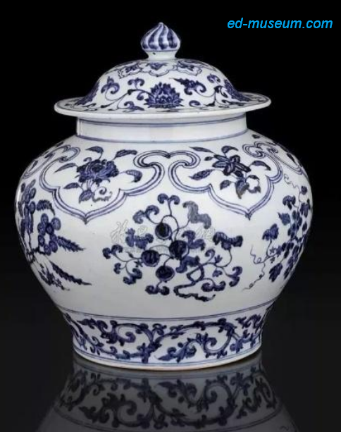 明永乐 青花垂肩如意折枝瑞果纹盖罐 尺寸 35cm 成交价 RMB 29,244,800 香港苏富比