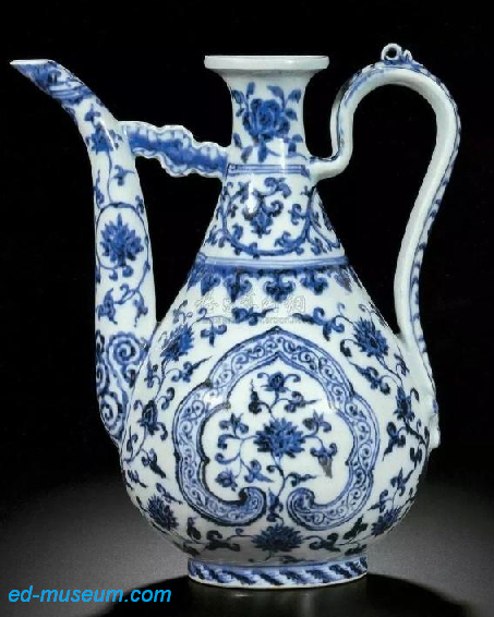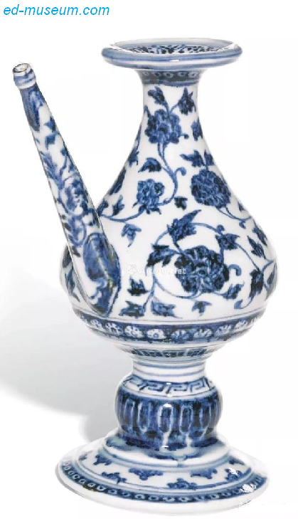 明永乐 青花缠枝花卉纹如意开光式“莲纹”执壶 尺寸 28cm 成交价 RMB 16,350,400 香港苏富比