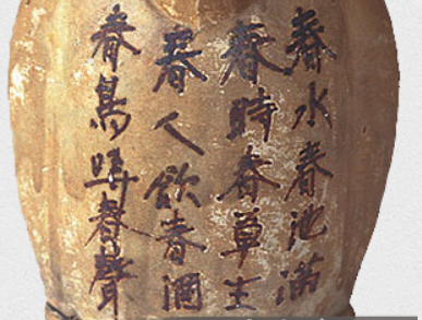 这是一首描写春天的诗,在长沙窑瓷上较为常见。春天由于东南季风吹向大陆,饱含水分,雨水自然较多,故有“春雨绵绵无绝时”之语。“春雨润物细无声”,渐暖和潮湿的气温有利于植物的生长,大地开始变绿。鸟语花香,人们也脸上洋溢着春天的气息。咏春是古时常见的题材,南朝乐府《子夜四时歌•春歌》便有佳句:“春林春多媚,春鸟意多哀。春人复多情,吹我罗裳开。”两首诗有异曲同工之妙,都是写春天带来的万物生机,给人们带来的欢乐。两首诗都写到春天给人带来的骚动,但表现方式却有所不同,乐府诗是“春人复多情”,而瓷上诗为“春人饮春酒”,这正与壶的用途呼应,无形中起到了激发酒兴的效果。