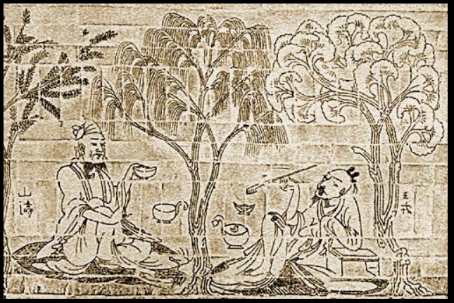 | 竹林七贤和荣启期是中国南北朝时期南朝墓葬中常见的大型砖印拼镶壁画题材,被使用于高级别规格墓葬中。在江苏的南京宫山、丹阳胡桥等地均有出土。目前保存最完好的是1960年4月在江苏省南京市西善桥宫山南朝墓葬出土的《竹林七贤砖与荣启期》砖印壁画,现藏于南京博物院。
