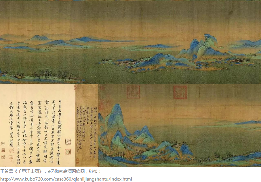 scroll titled A Thousand Miles of Rivers and Mountains (千里江山).