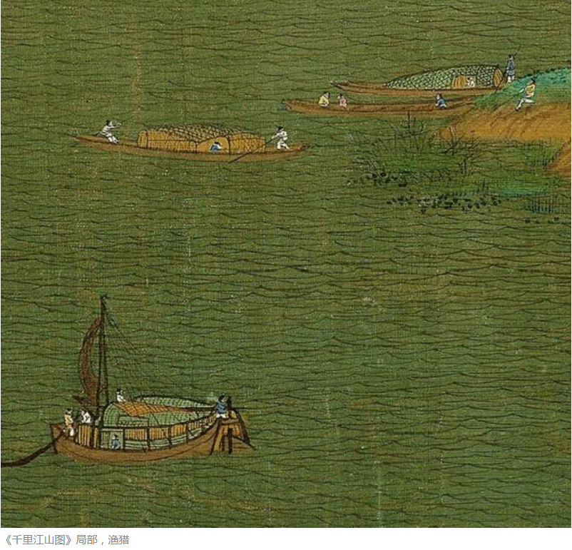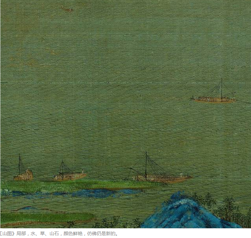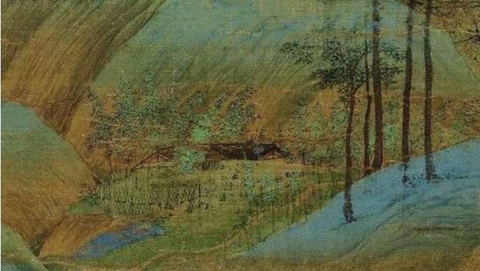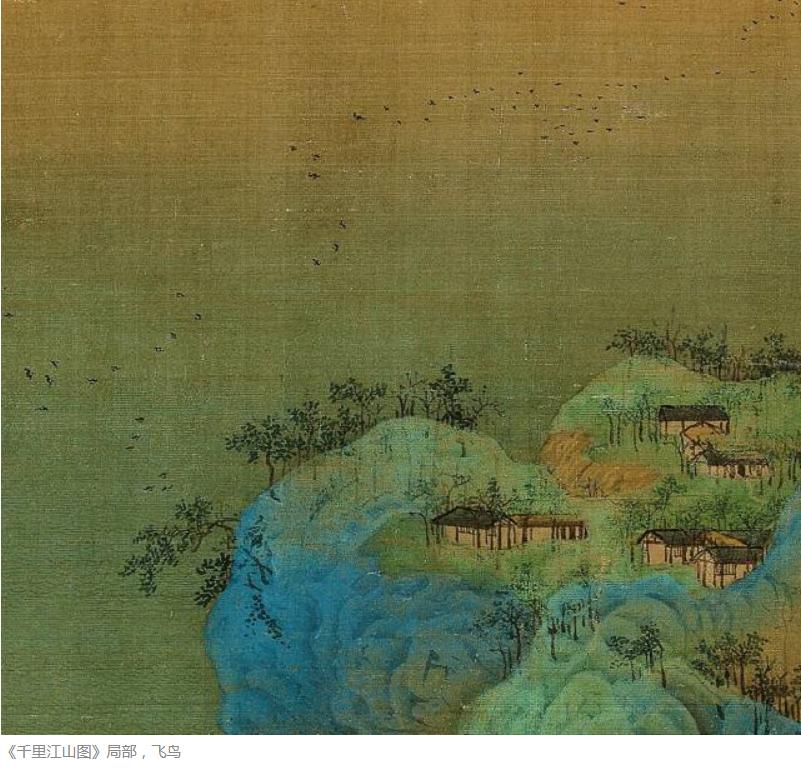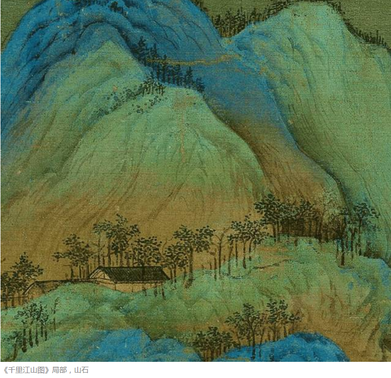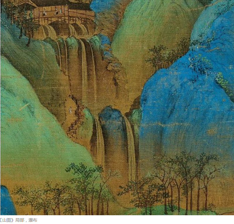 A section of A Thousand Li of Rivers and Mountains section. Color on silk.