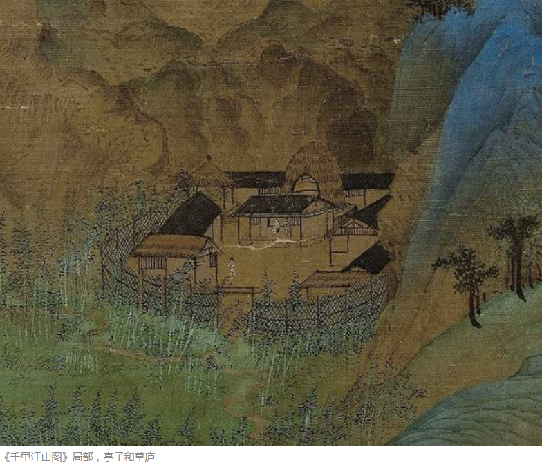 | A section of A Thousand Li of Rivers and Mountains section. Color on