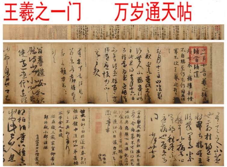 意义:唐摹《万岁通天帖》以其忠于原作风貌,为人们提供了研究二王以及东晋至六朝书法的可靠依据。《万岁通天帖》包含着深厚历史与艺术价值。