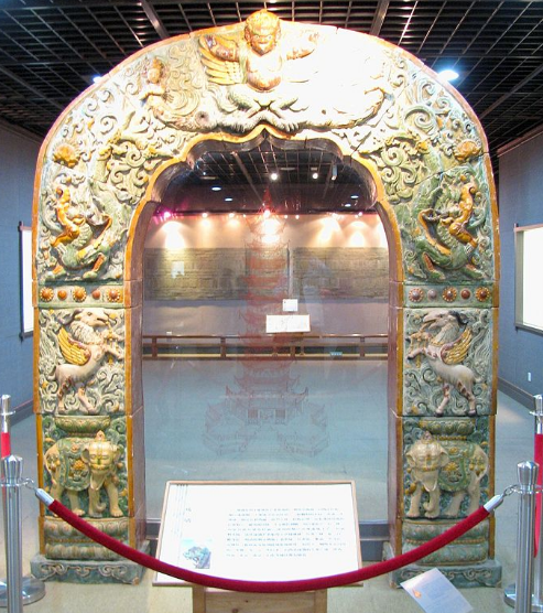 相对较为完整的大报恩寺琉璃塔拱门,目前陈列在南京博物院历史馆,在南博雕塑馆、南京市博物馆,则有散落的大报恩寺琉璃塔拱门琉璃构件的收藏。 |